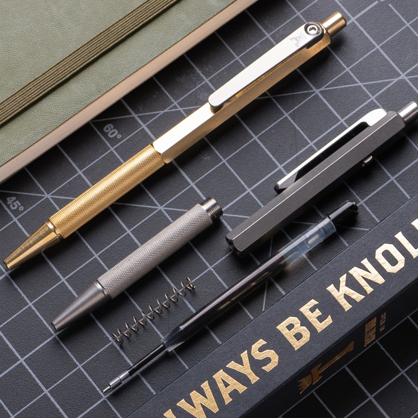 Slim pens on their own are difficult and Jens wanted to go significantly slimmer than anything we had done before and utilize our Side Click mechanism, requiring plenty of iterations to get right. On top of that, the hexagonal body was a bigger challenge than expected. Most of the time, hexagonal-shaped pens are made from extrusions of aluminum or brass which is straightforward. Titanium hex is a different story and the suppliers that were willing to do it required huge orders which we didn't feel comfortable with knowing if the tolerances were even slightly off we'd be sitting on a lot of very expensive scrap.