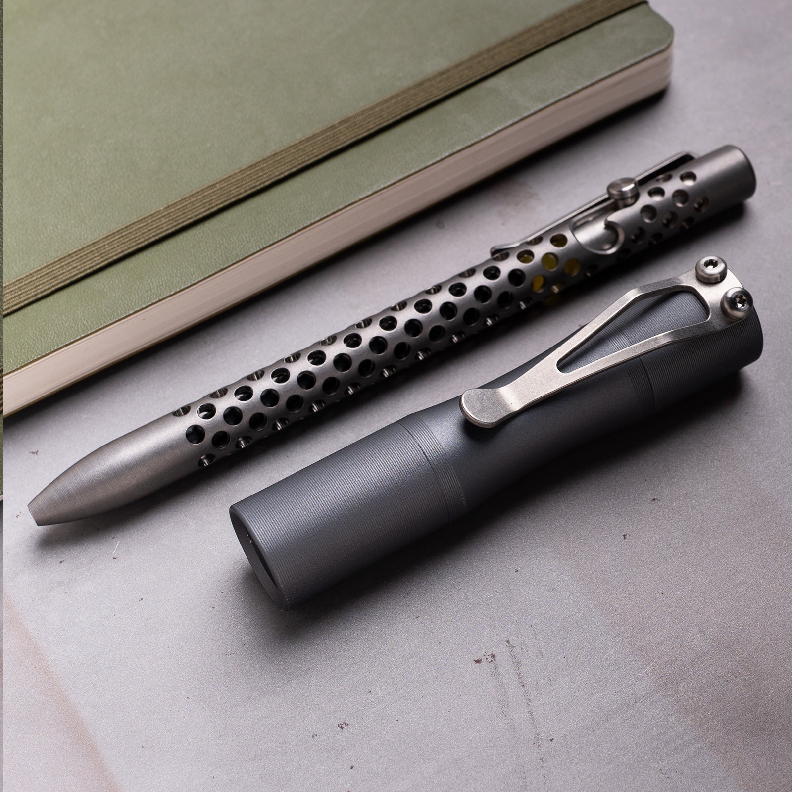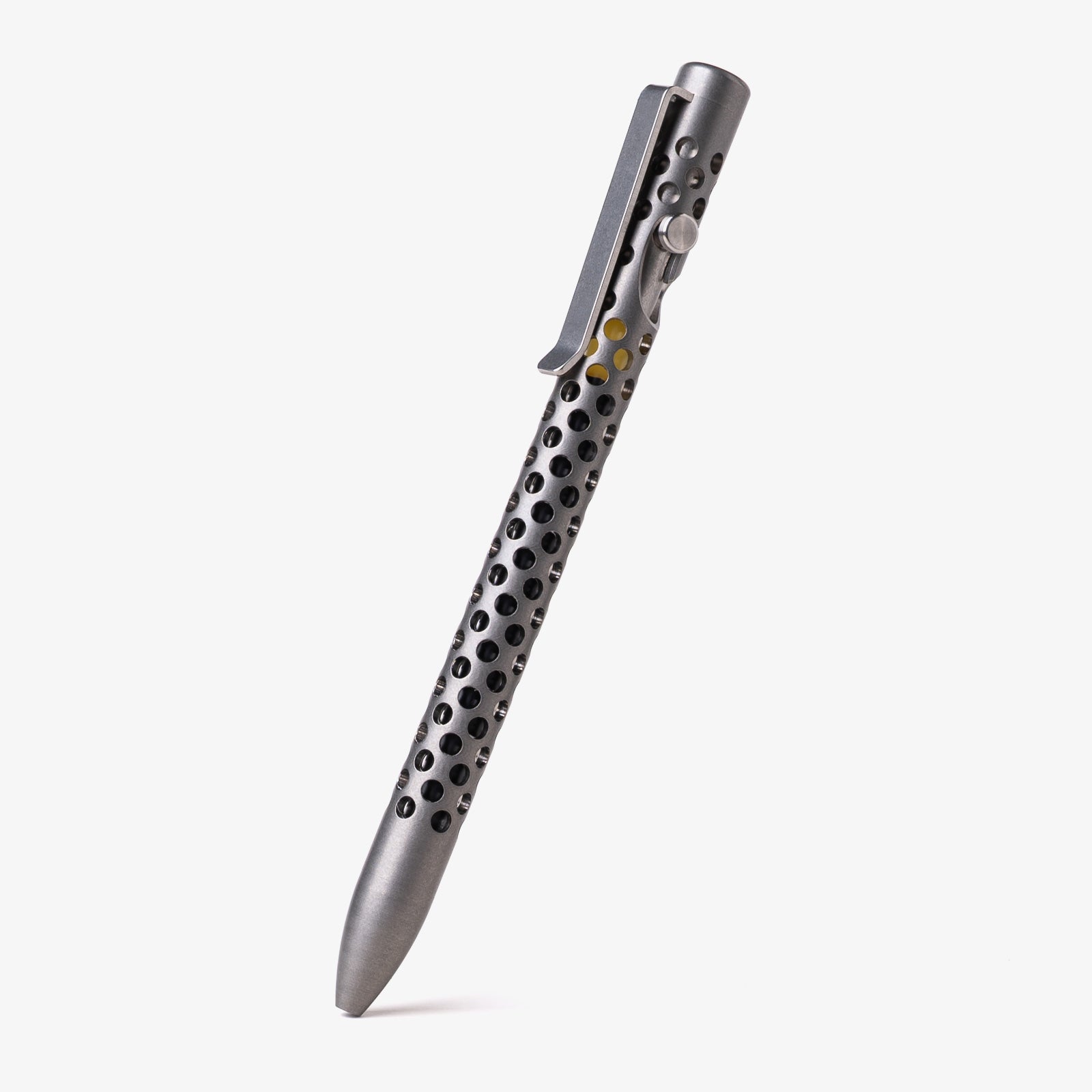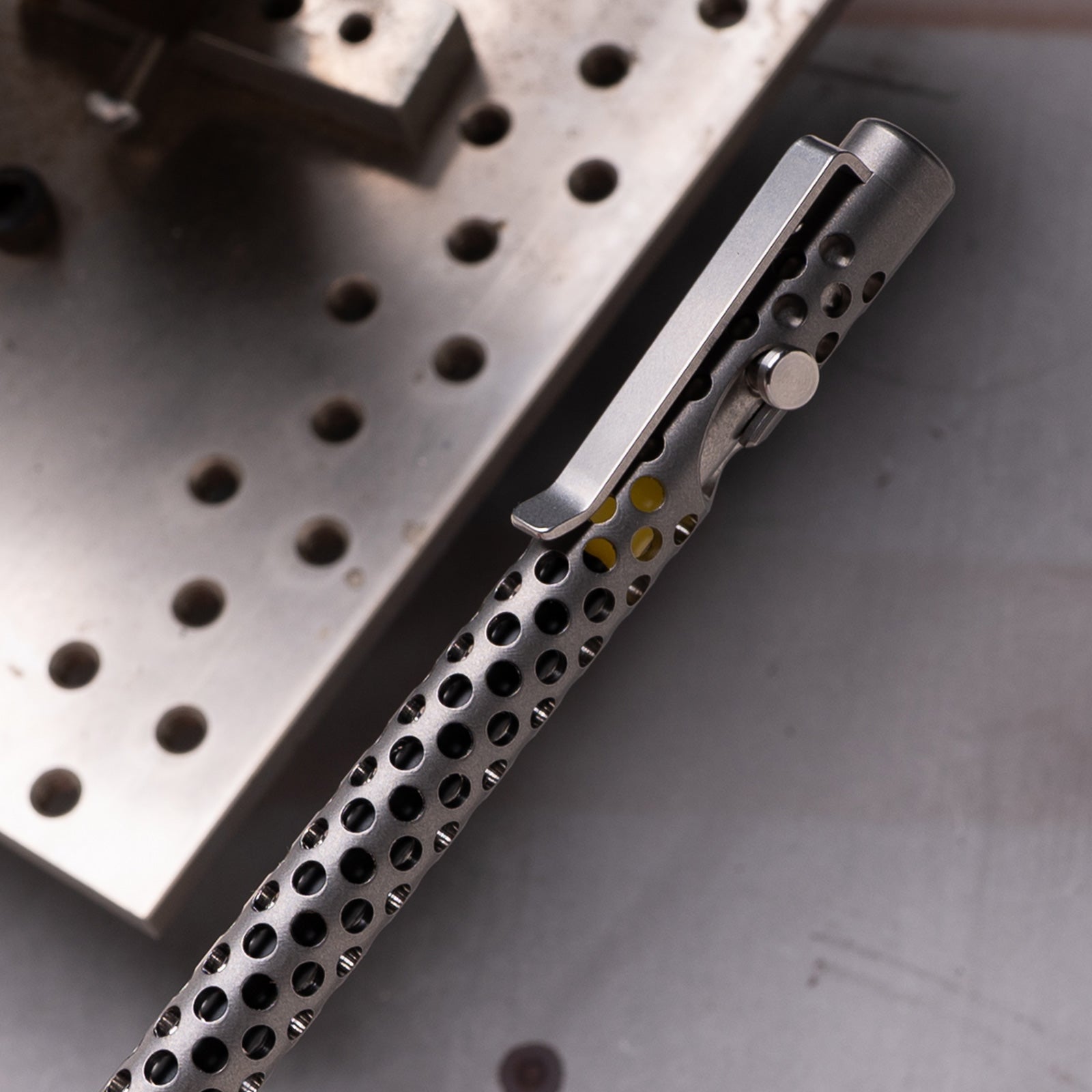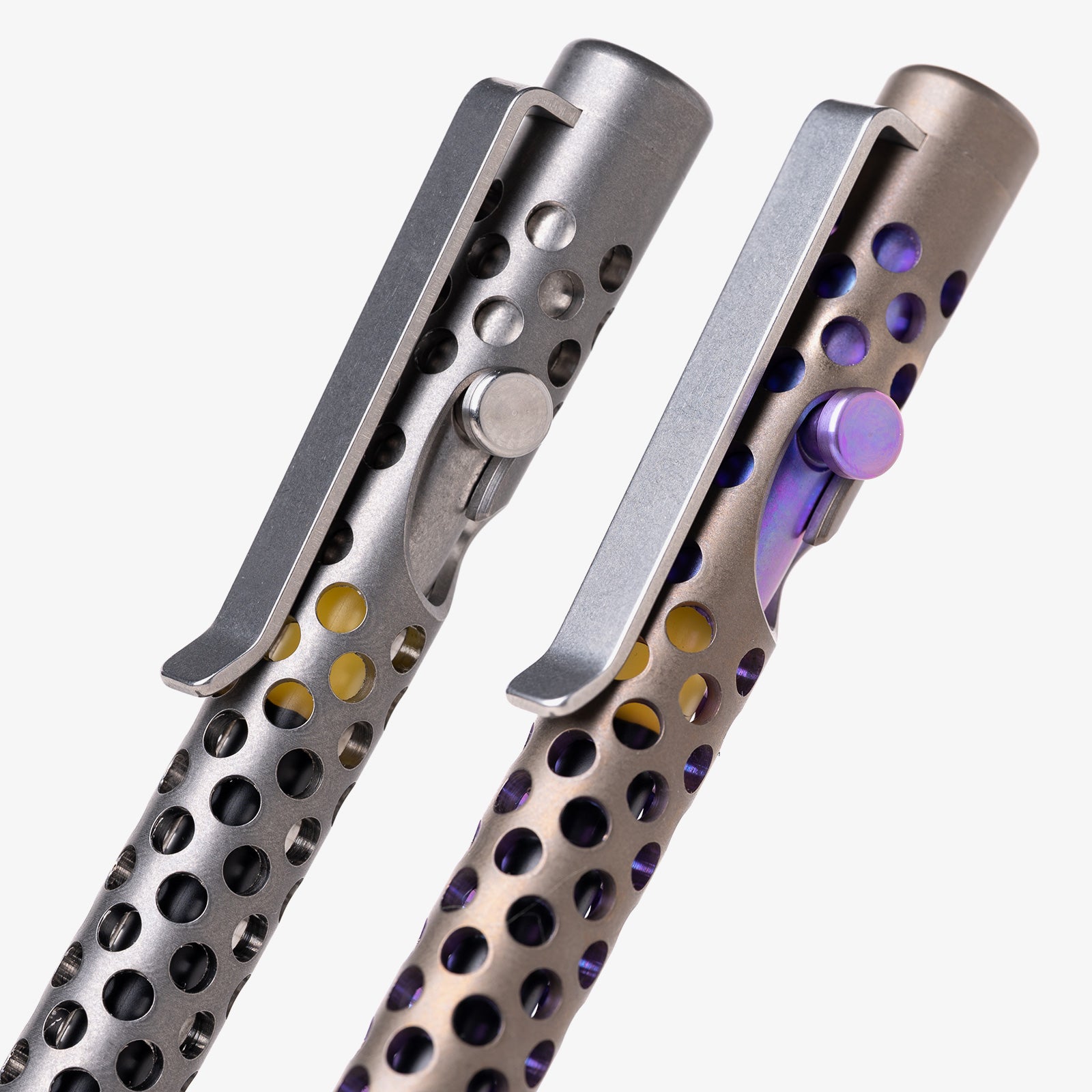 After introducing the Aluminum Skeletonized Bolt Actions earlier this year the response was clear: do it in titanium. So we did. Each pen sports over 150 holes to reduce weight and show the internal workings. Available in a Dual Tone Anodized purple/bronze finish or our classic Stonewash while supplies last.