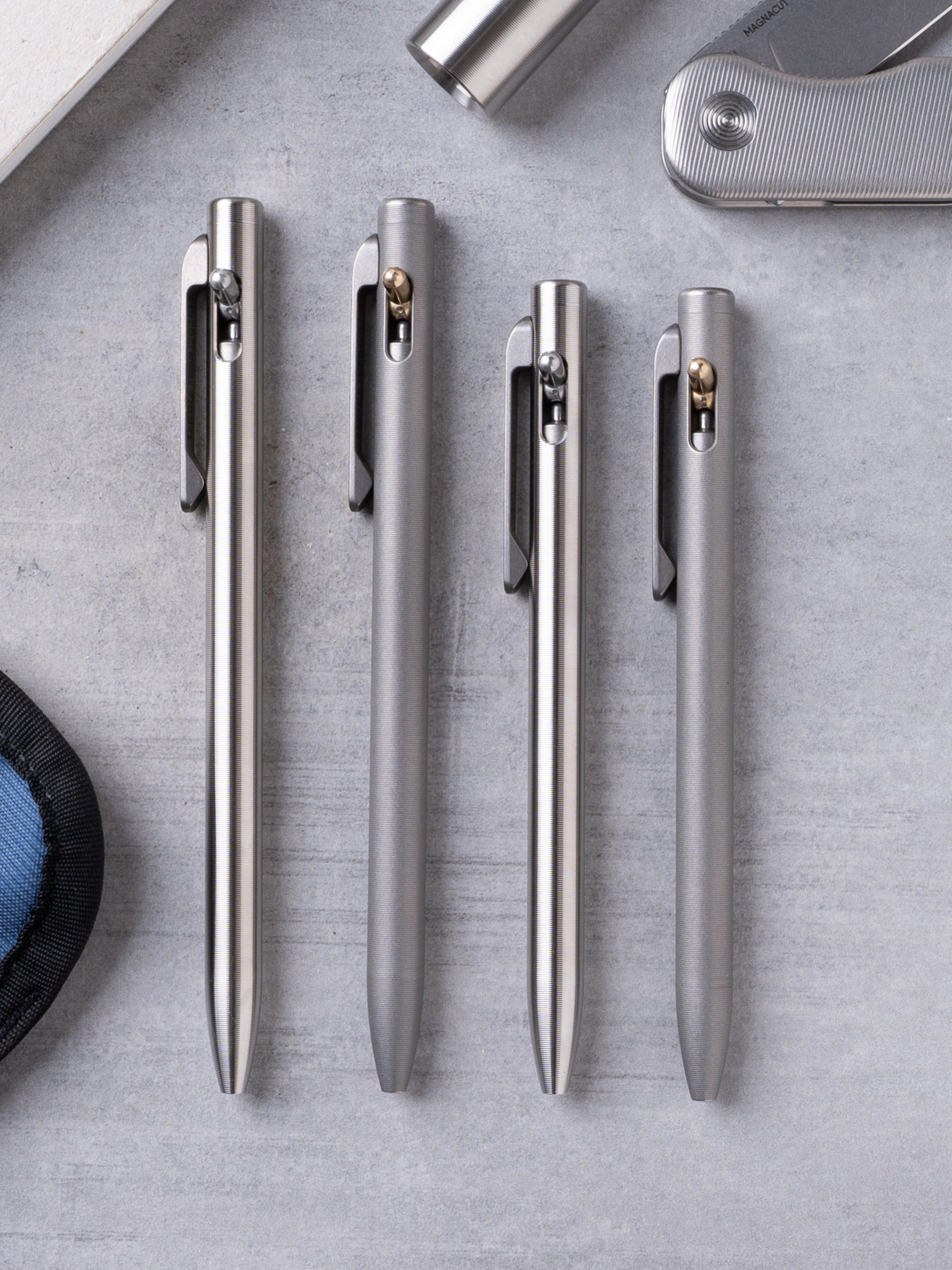 We're keeping things simple for launch with only one size and material. This mechanism is a little longer than the Bolt Actions or Side Clicks so we felt it'd be too long if we did it in the Pilot G2 size. We might do other variants in the future but, at least for now, wanted to gauge interest with titanium.
